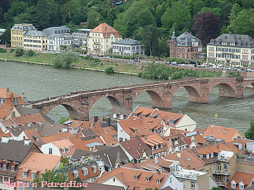 海德堡的美麗讓許多文人讚頌,讚頌它的壯闊、讚頌在眼前的井然有序,依偎在涅卡河畔的典型老橋,排列整齊的紅瓦屋頂,至今也讓來此一遊的旅客目光頓時停滯。
