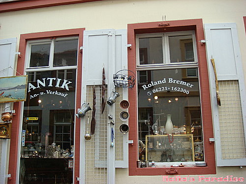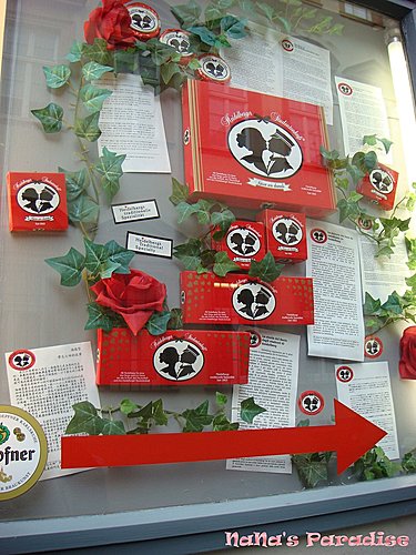 來這裡遊玩的旅客總是忘不了要買點紀念品,著名的『海德堡之吻』巧克力,儼然成為海德堡的註冊商標,這麼特別名字一定有個特別動人的故事,在20世紀初期,來海德堡求學的女學生,都會有家僕或隨從跟隨在身旁(有點像書僮),以防有無聊的男子糾纏,可是正值花樣年華的少男少女們,總是會有心儀的對象,於是在咖啡店裡用秘密傳遞名為『吻』的巧克力給對方,用來表示愛意,既含蓄又不失禮節,而傳頌有百年之久的『海德堡之吻』,讓這種充滿特殊涵義的巧克力成為海德堡最浪漫的紀念品。