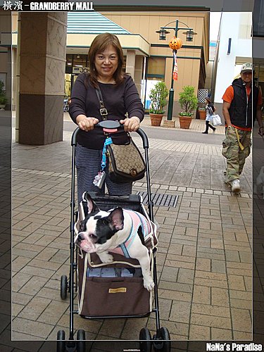 ↓雖然這裡可以攜帶寵物,不過部分的商店還是不好意思把帶進去,只見我家大娘跟在外面