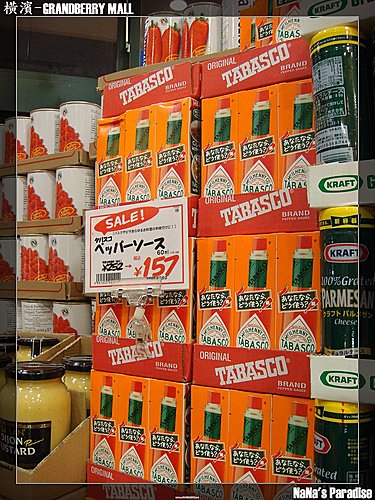 ↓既然是outlet當然也少不了進口的食品,這是馬先生的最愛,這裡一罐TABASCO只要157yen,折合