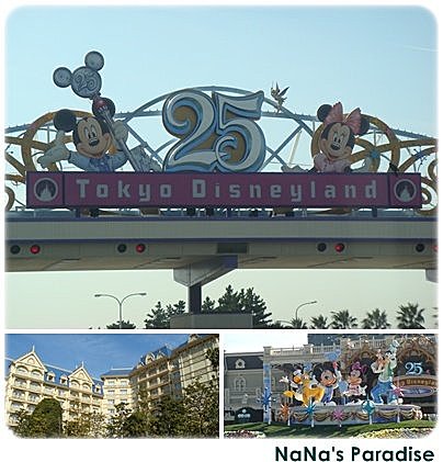 ↓ 一般來東京迪士尼咱們都是開車來,從品川到迪士尼的車程大約1小時內就可以抵達,省去了轉車的麻煩...最主要的是咱們家的兩老喜歡輕鬆一點玩樂,不用先在電車上享受三溫暖的洗禮;小型車上高速公路的收費一次是700円,至於在樂園裡的停車費一次是2,000円。開車進入樂園時就可以看到眼前歡慶25週年的招牌...這時奈奈及和也已迫不及待的想要衝往這可愛的樂園了。