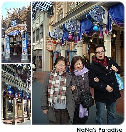 ↓ 自入口處往世界市集方向到商店街的兩旁,歡慶週年的感覺越來越濃烈...世界市集是奈奈及奈姨的最愛,每次總要在這裡逗留好一陣子 (為什麼一開始就讓人逛街)...雖然也覺得浪費時間...但奈奈就是冷未條ㄇㄟ...這次特別帶上以前來迪士尼所購買的購物袋...這樣就不用花錢再買一個囉!!