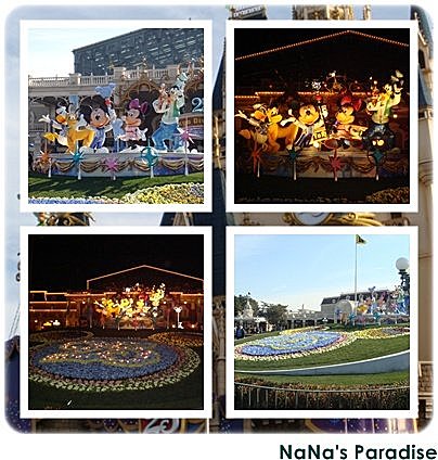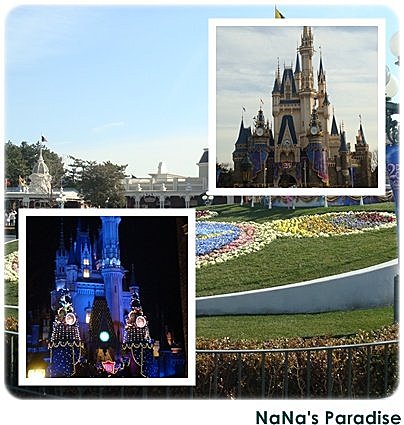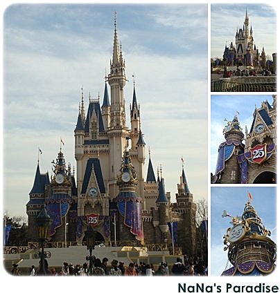 ↓ 每每迪士尼的節日慶典裡,灰姑娘城堡都會被裝飾的富麗堂皇,不管是耶誕節、萬聖節還是歡慶週年,日本人總是有各式各樣的點子吸引觀光客來此消費。而歡慶25週年的活動裡,夜間城堡前會舉辦歡慶的活動,不過這個活動是要經過抽獎的...很遺憾奈奈錯過了抽獎時機,所以只能在遠處盡量用力看囉!!