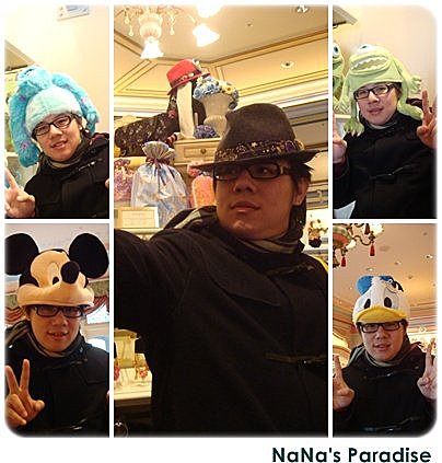 ↓ 在世界市集的商店...裡裡外外都充滿著可愛的氣氛...當然不可以錯過的是在店裡面玩耍一番囉!!...在商店裡面有許多可愛的玩偶及卡通人物的裝飾帽子...實不相瞞...奈奈曾經也買過一頂...最後還是被打入冷宮...也因此奈媽下達命令...對於這些可愛的東西只能看不能買,也因此充分利用來這裡逛街的時間...努力給他拍照囉!!