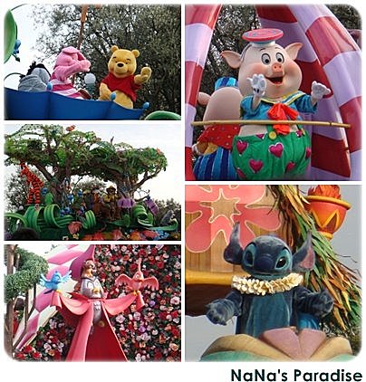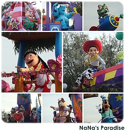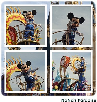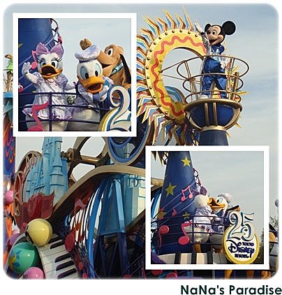 ↓ 遊行的尾聲就是奈奈的好朋友...Mickey登場了,Mickey的好朋友們搭乘25週年的遊行車與街道兩旁觀賞的遊客打招呼,也為即將尾聲的遊行畫下美好的句點。在這裡不管是大朋友、小朋友或是媽媽朋友,來這裡你都可以喚起兒時的赤子之心,奈奈不想太早變老、太早說老...因為奈奈還想一直來這裡享受歡樂、享受年經的氣氛。