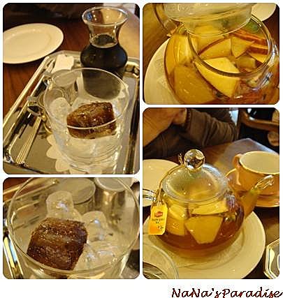 ↓ 坐定位沒多久...服務人員就將我們點好的餐點送上桌囉!! 平常並沒有喝咖啡習慣的奈奈跟奈媽,在網路上看到大家大力推薦的「冰滴咖啡」,決定要來試試看;冰滴咖啡不都份量不多嗎??...這裡的冰滴咖啡還真的很大杯,玻璃杯裡還有一塊咖啡冰磚...加上一點牛奶及果糖...真的好好喝喔!! 而水果茶也相當的豐富,貼心的服務人員會時時注意詢問客人是否要添加熱水。