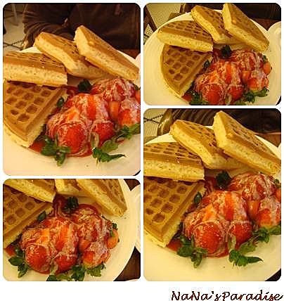 ↓ 冬天有奈奈最...愛的草莓,裹著冰淇淋及cream的草莓看起來好像很多...對奈奈來說算是小case...沒兩口草莓就被奈奈給嗑完了;店家的各式鬆餅也堪稱一絕,看周遭客人幾乎都有點上一款;鬆餅烤得很香卻不會過溼(有些鬆餅吃起來的感覺太軟),抹上一層冰淇淋及cream再一口一口思文下肚...整個就是很有氣質的吃相。