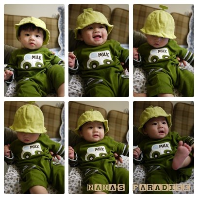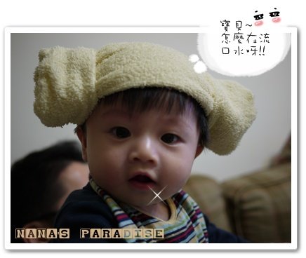 ↓ 這個哈密瓜帽master帶起來真的好好"笑"喔!!~奈媽覺得帶帽子好看...奈奈也就很放肆的買一堆給他帶。