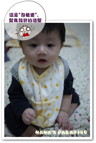 ↓ 最後送上媽咪設計的新造型~尿布帽,邁向9個月的master成長變化又是如何呢?!