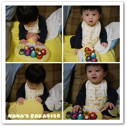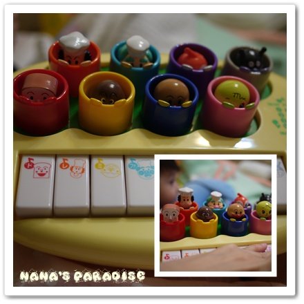 ↓ 這次奈姨回來帶了master的小禮物~麵包超人小鋼琴(琴鍵按下去麵包超人會跑出來喔!!),