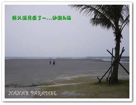 ↓ 推著娃娃車~眼前所見是好久不見的沙灘還有海耶!! 不少年輕朋友來這裡玩水跟"踩沙";