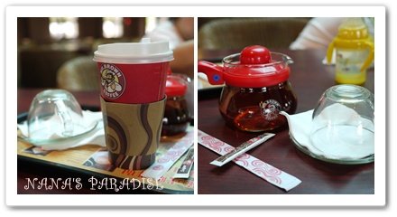 ↓ 這是馬先生點的拿鐵(不加糖)還有奈媽的果茶,這裡飲品的價位大概在100~130元不等;