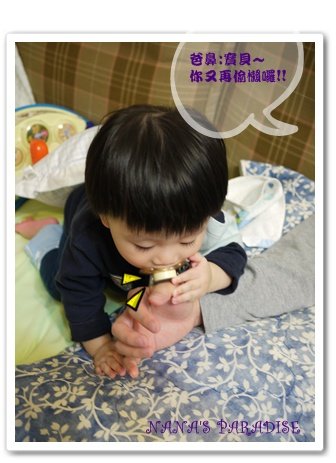 看的媽咪我又好笑、又好氣,不知道是偷懶還是聰明呀!!~不過有達到他的目的就是了。