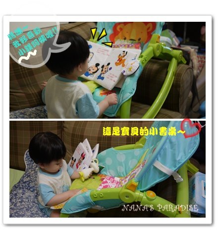 將書本放顛倒~他還會把書翻正耶!!~讓婆婆大呼不可思議...媽咪拍手鼓勵。