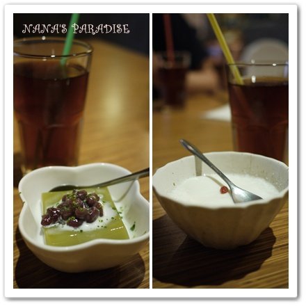 ↓ 餐後的甜點是抹茶口味的布丁跟杏仁豆腐,味道很濃郁喔!!