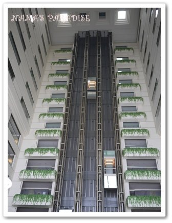 ↓ 正對著午茶地點的是聳立在中央的電梯,由下往上看去還挺壯觀的...