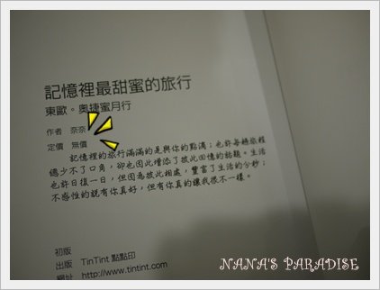 ps : 奈奈忘記拍內頁了,想要欣賞奈奈的蜜月作品請連結到here。