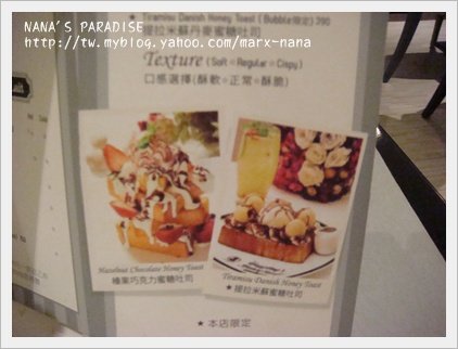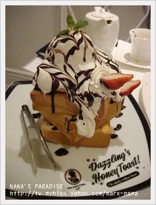 年初剛在新竹大遠百盛大開幕的Dazzling Cafe,這回跟姐妹約好趁著假日來一探究竟;已經再台北嚐鮮過的奈奈,這趟純粹是抱著好奇的心理,到底有什麼魔力讓隔壁桌的媽媽帶著女兒甘願一大清早就 來這裡排隊(~真的很納悶)。因為Dazzling Cafe真的太火紅了,若沒有早早訂位,想要踏入店内那唯有早點來排隊;在好奇心驅使下,早早就在門口等著百貨公司開門(提早約10分鐘到吧!!);不誇 張~這店門一開,大的拉小的、老的先往手扶梯飛奔,這回大家的目標一致,就是位在三樓的Dazzling Cafe...蜜糖土司。