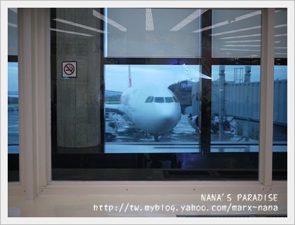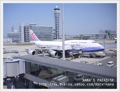 ↓ 託master的福...我們又優先登機了;從空橋向外看去剛好看到華航的飛機...有大隻。