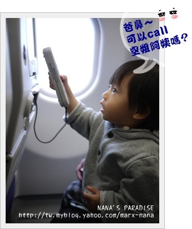 期間還一直call out給空姐來給爸爸看(誤觸到服務鈴)~爸爸說真是乖兒子呀!!