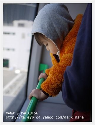 ↓ 通關後要坐一小段的接駁車到出境大廳,感覺睡醒後的master還一愣一愣的。