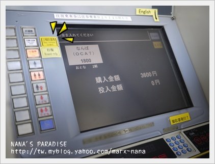 ↓ 往大廳的出口走出去,走廊上可以看到上圖的售票機;坐到難波(OCAT)單程票1,000丹,