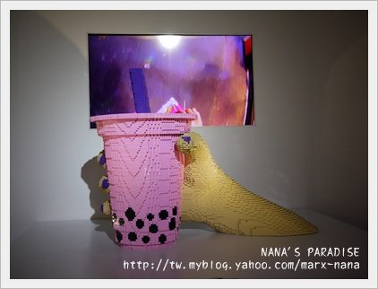 ↓ 這件作品就難不倒奈奈...台灣之光"珍珠奶茶"也被樂高堆成大尺寸。