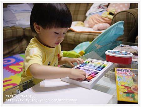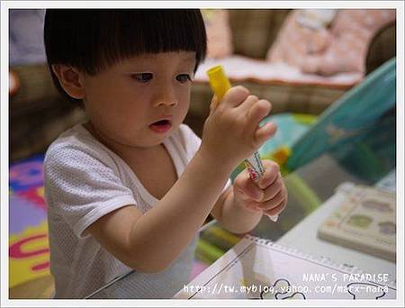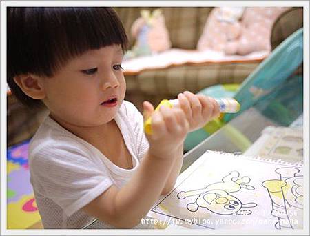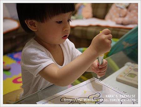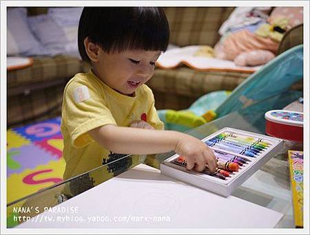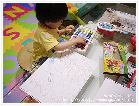 ↓ 不過看他認真的模樣~值得,現在只要看到色筆及蠟筆就興奮的說要畫畫。