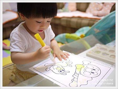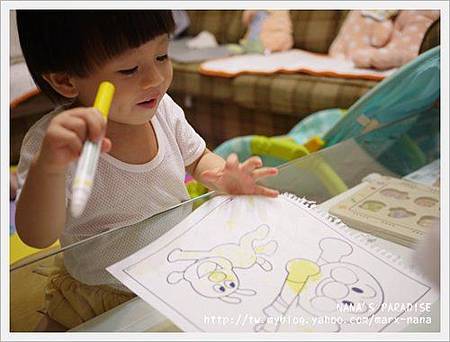 ↓ 畫畫當中奈奈也沒閒著,看著寶貝拿起的顏色講出中英文,除了畫圖外學習認識顏色一舉數得~哈哈。