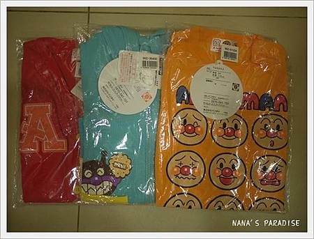 右邊兩件是薄外套,單價都在2,000丹左右,最左邊是各式表情的麵包超人T。