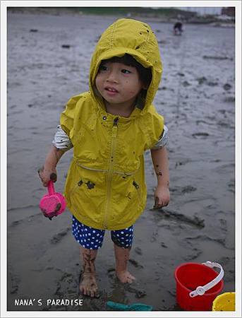 ↓這天到香山溼地玩泥巴,因為抵達目的地開始下起小雨,給小子披上防風(雨)小外套;