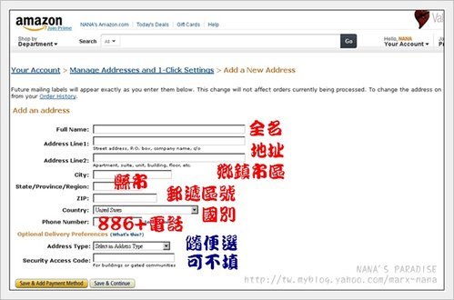 註冊及設定英文雖稱不上頂瓜瓜,但比起德文應該好的很多;只要在任一amazon的網站註冊各國都可以適用喔!!