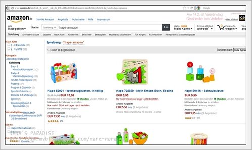 千呼萬喚終於把amazon的訂購文給生出來了,年前開始幫master物色新年玩物,比價過台灣各大網站的價位,參考了不少媽媽的生火文,奈奈決定到 amazon.de買買看;不過自去年年中開始,amazon.de的國際運費已經有調價過,已經不是原本不限重量(數量)一律14歐的收費,現在訂單成立就會收取14歐,之後會依商品的重量酌收運費(換算運費大概1kg = 320350元台幣不等);所以要在在amazon.de購物的看倌們可要精算一下,划不划算就要自己衡量看看囉!!話雖如此,奈奈還是在 amazon.de買了幾樣原產於歐洲的玩具,價差大概便宜在80100元台幣,時間上需約等待23週,要來分享一下這次圓滿的購物經啦!!