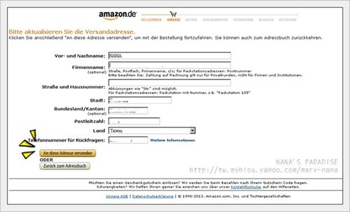 建議可以在amazon.com先設定好郵件地址,免得轉到amazon.de時看德文看的很痛苦。