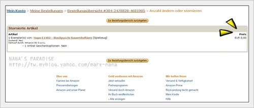 就是下方的動物拼圖讓奈奈等了又等,最後只好忍痛取消;選擇右邊的第二個按鍵取消訂單。