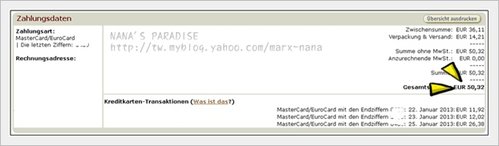 最後amazon.de跟奈奈收取的費用總計是50.32歐。